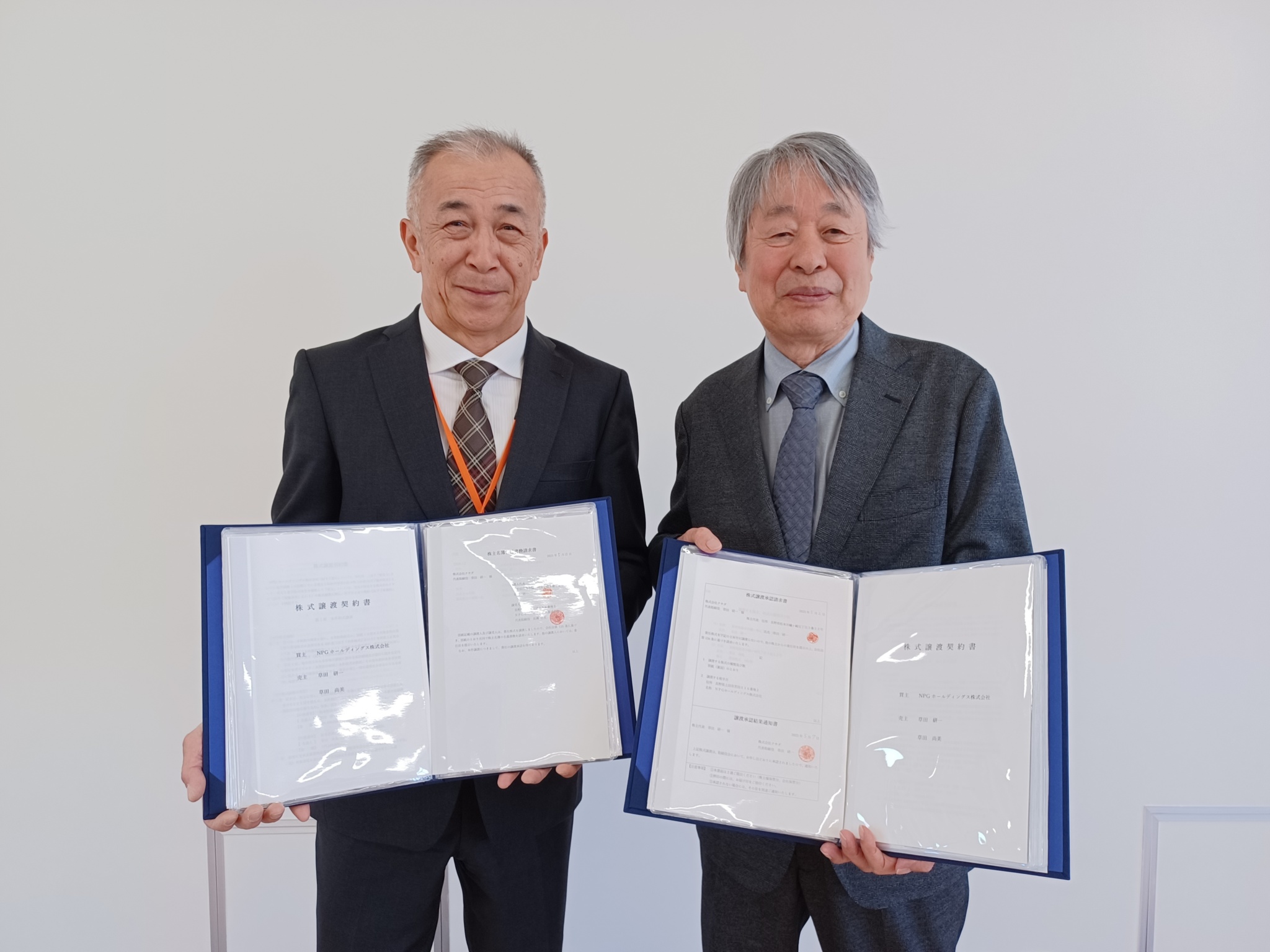 RSS(別ウィンドウで開きます) 一覧へ戻る 株式会社クサダの全株式取得に関するお知らせ2025-05-20重要平素は格別のご高配を賜り、厚く御礼申し上げます。2025年5月13日、弊社は松本市内で一般住宅を中心に給排水衛生設備業を行う株式会社クサダの全株式を譲り受けたことをお知らせいたします。本件によりグループ全体でお客様に対し更なる付加価値を提供し、より快適な暮らしの実現に向けて地域社会を支えていく所存です。《写真》左:NPGホールディングス株式会社 代表取締役社長 株式会社クサダ 代表取締役社長 長瀬 吉夫右:株式会社クサダ 取締役会長 草田 研一